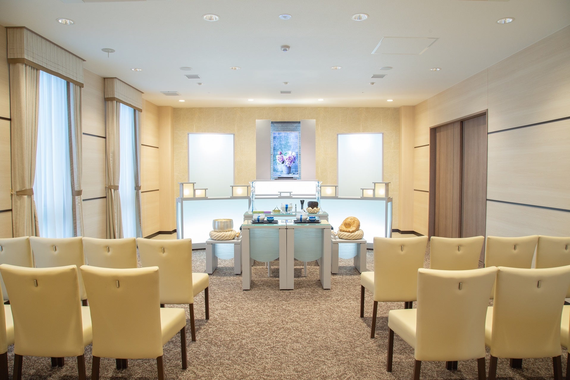 席数: ホール30席、お清め室16席、親族控室1室、司会者控室1室、霊安室2室