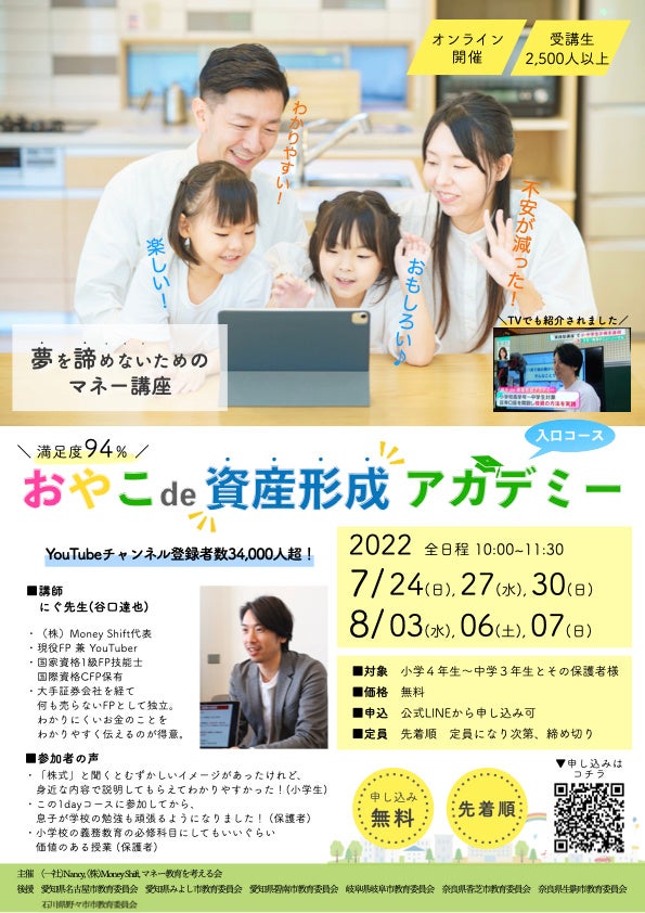 親子がお金を理由に夢を諦めないためのオンライン投資教育イベント、関西・北陸に初進出!