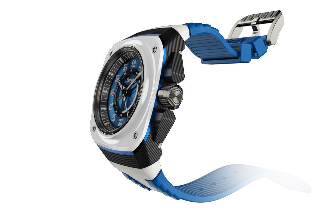 この「LEGACY HOKKAIDO」は、高級素材であるホワイトのセラミックベゼルに、明るく落ち着きのある北海道ブルーとゴールドのアクセントを加えたデザインで、ケースはフォージ・ド・カーボンを採用した100m防水仕様。強さと高級感を追求したモデルです。