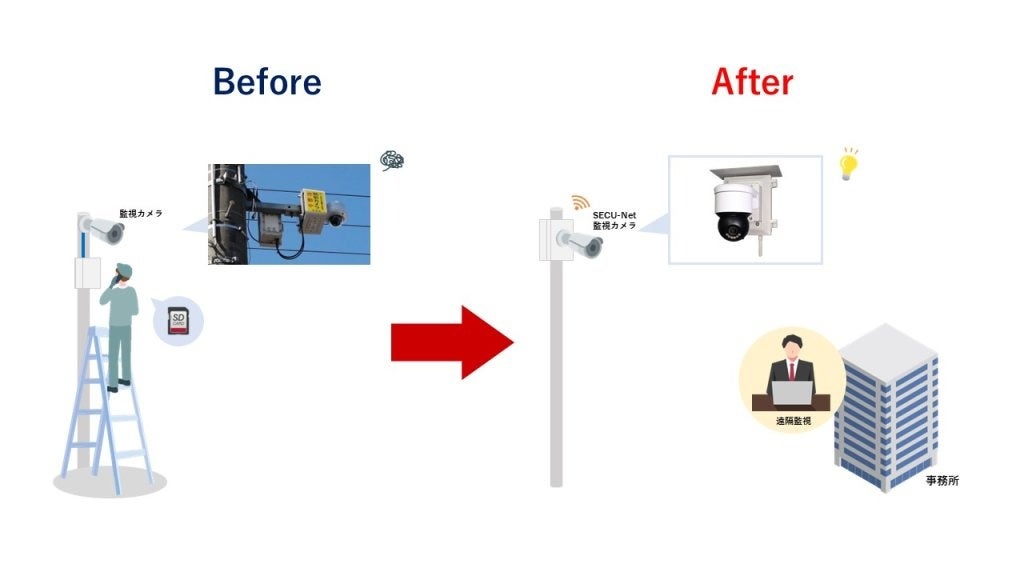 一方で、これまでの防犯カメラシステムにはいくつかの課題がありました。最も大きな問題が、録画映像を確認するための手間と時間です。設置場所に都度足を運び、SDカードを取り出して確認する必要があり、現地へ行ってみなければ正常に録画されているかどうかも確認できませんでした。また、リアルタイムの映像確認やカメラの向き・ズーム調節は困難で、事件・事故の発生状況の監視や対処まではできませんでした。