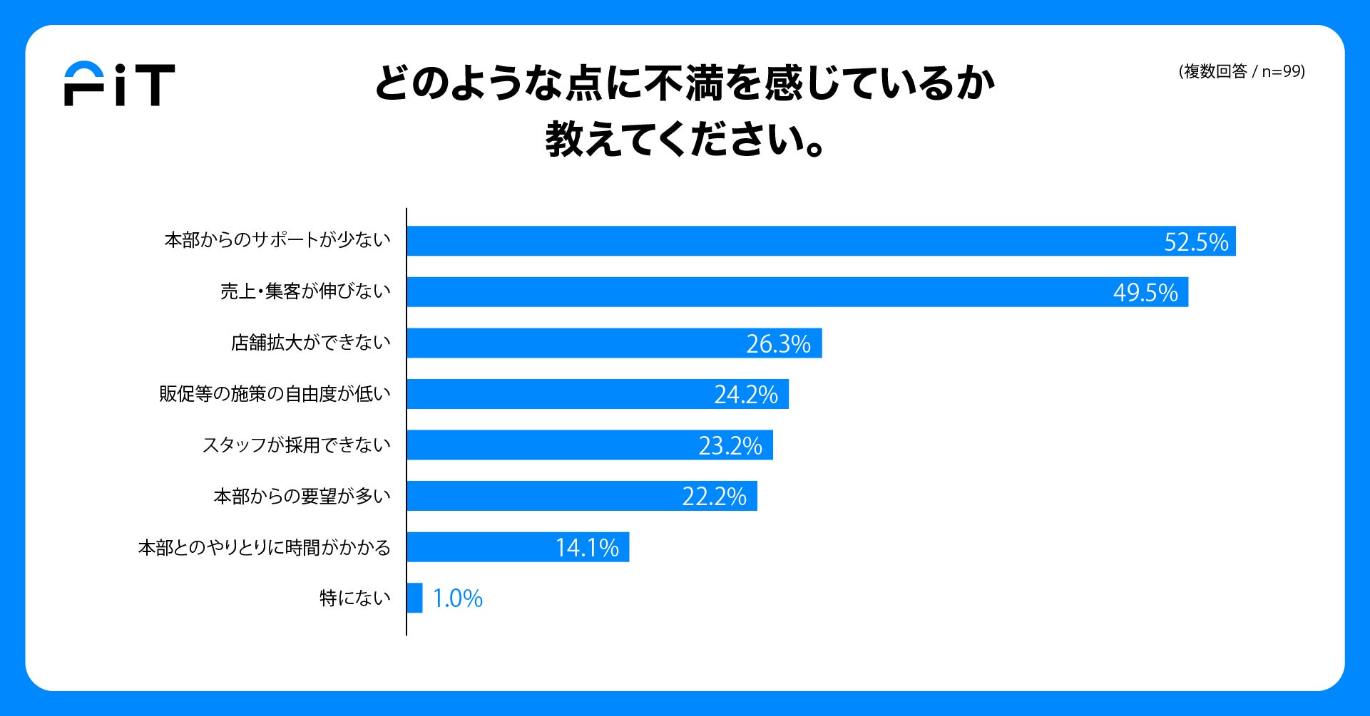 約半数が本部からのサポートや売上・集客の伸び悩みに不満