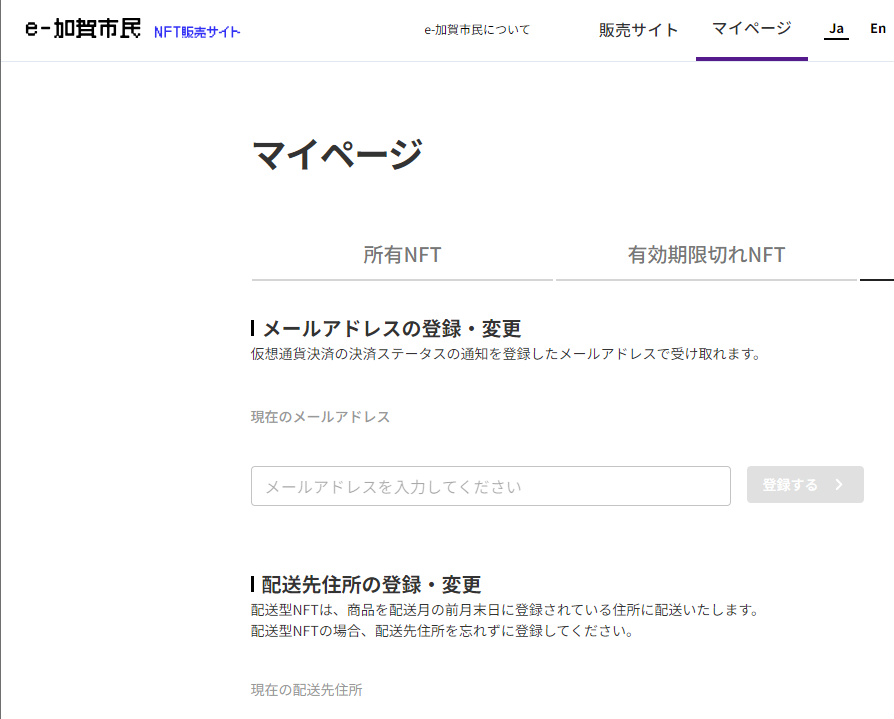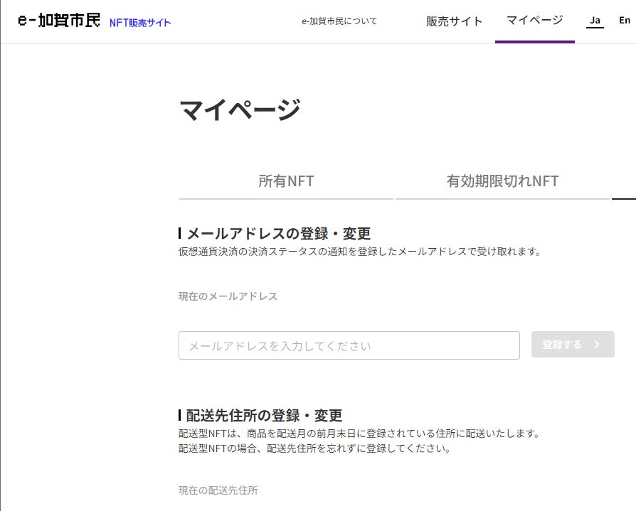 e-加賀市民証(500枚限定版)の所持者で、マイナンバーカードを用いた公的個人認証を事前に行うことで、加賀市イノベーションセンターにおいて国家戦略特区の特例措置サービスなどを利用することが可能となります。e-加賀市民証NFTを購入後に、下記のマイページから「マイナンバーカードの認証」ボタンを押して、初期登録をします。認証が済んだ方は、加賀市イノベーションセンターに設置する機器で、マイナンバーカードをカードリーダーへ通すだけでe-加賀市民証NFTの所持確認が可能となります。