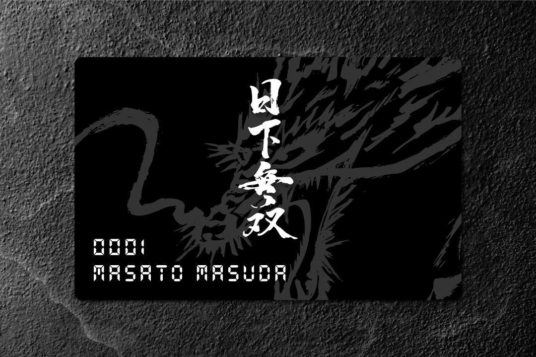 日下無双 BLACKカードは15,000円以上の傘下者限定。エンボス加工で、傘下者の名前を彫刻する。