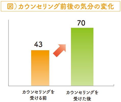 本研究では、オンラインカウンセリングを利用した従業員の気分の変化を測定しました。カウンセリング利用前後の気分を100段階で評価するスライドバーを用いた結果、次のデータが得られました。