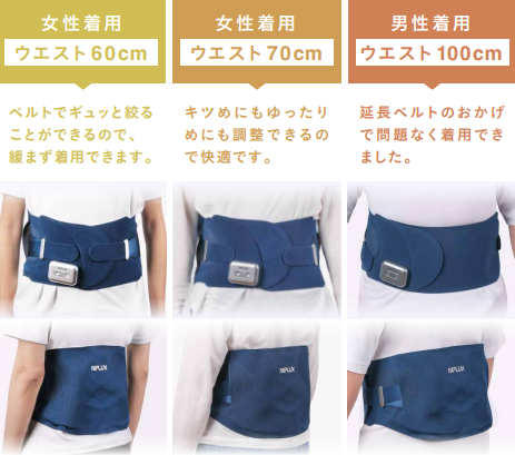 その人の体型に合わせられるベルトで、締め付け具合もお好みで調整できます。