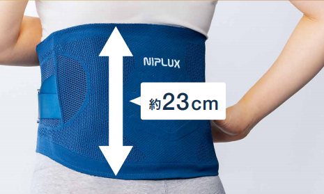 最大約23cmの縦幅で、腰全体をしっかり固定して徹底的にサポートします。
