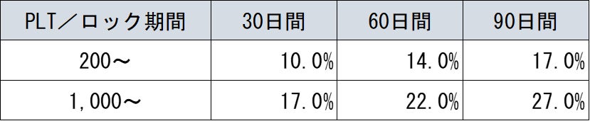 ステーキング報酬を年率換算(APR)した場合のプラン例