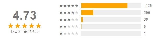 有り難い事に現在では5段階評価中平均スコアは「4.73」で1,000件以上の口コミが集まっております。