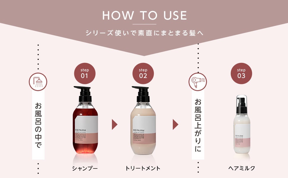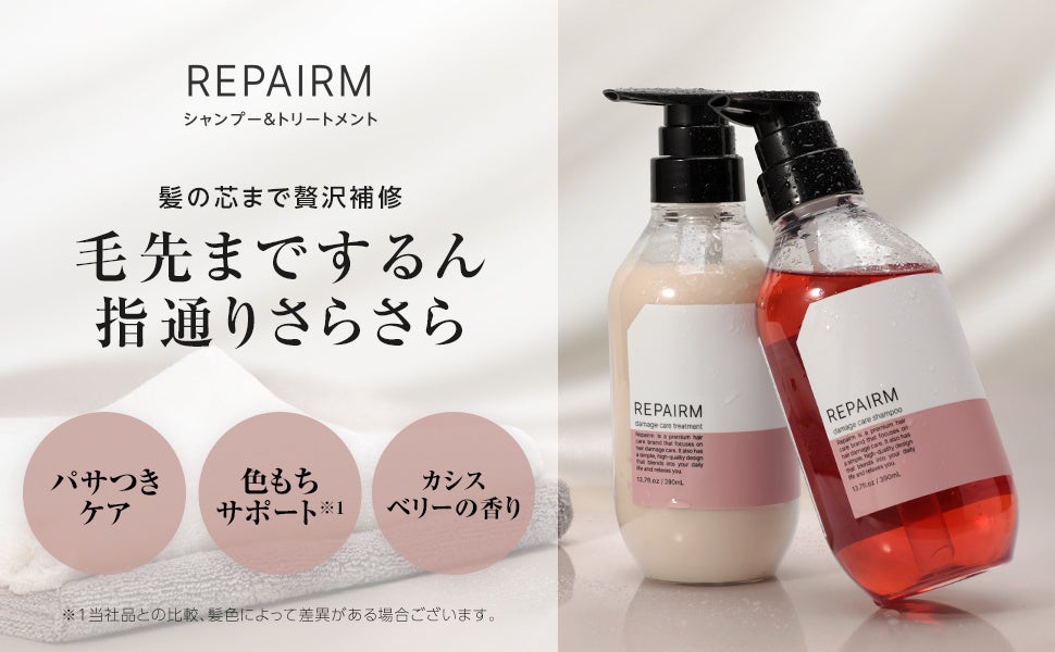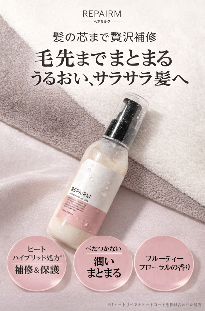【Amazon新生活SALE対象】〈新商品〉REPAIRM(リペアム)新ヘアケアシリーズ登場。シャンプー・トリートメント・ヘアミルク発売。髪の芯まで補修し、パサつきをケア。うるおいサラサラ髪へ