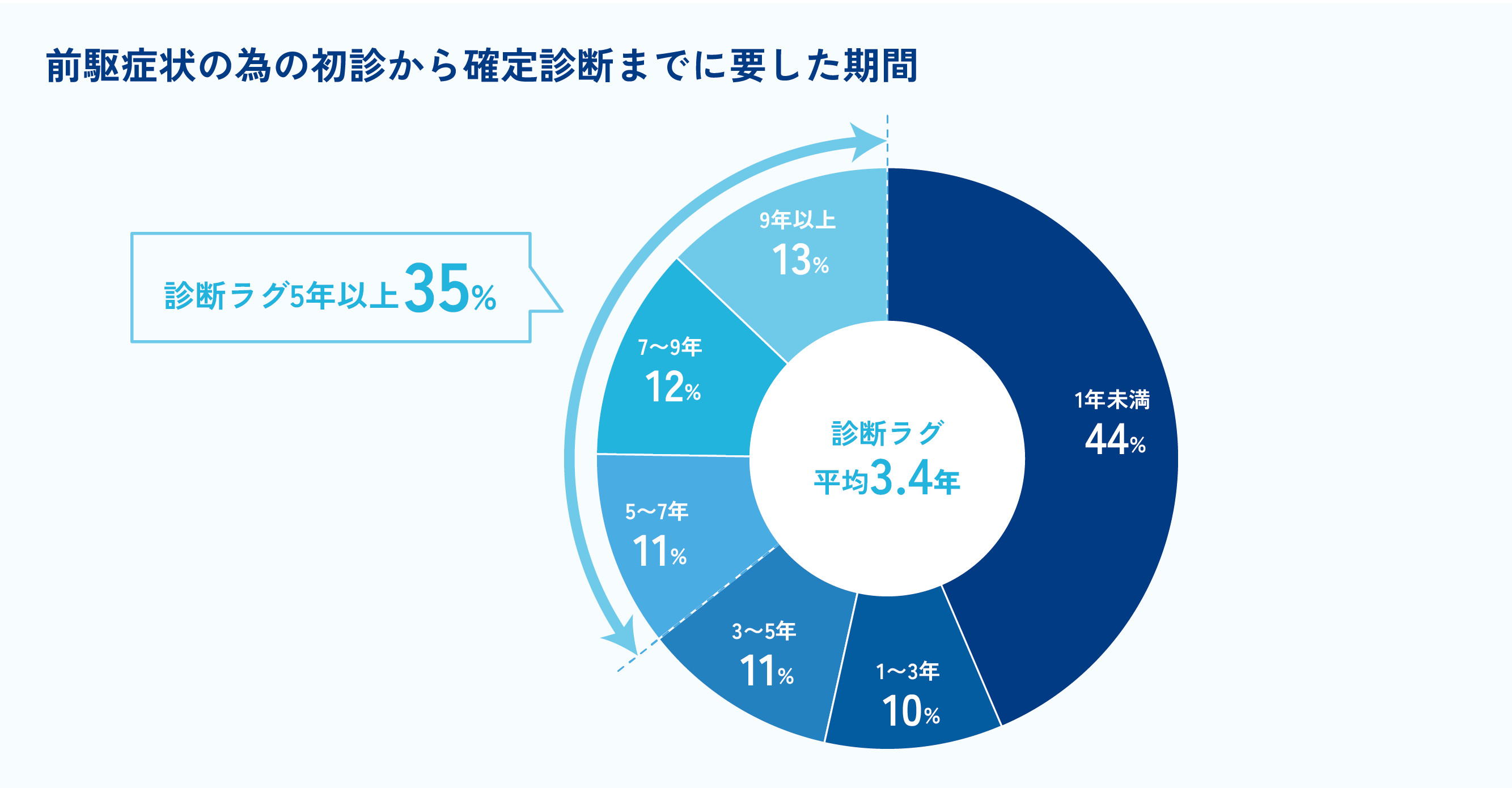診断に5年以上かかるケースは全体の35%(おおよそ3人に1人)※1