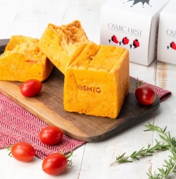 セミドライにしたOSMICトマトを練りこんだ「OSMICトマトキューブパン」はアクアシティお台場内にあるOSMICトマトレストラン「OSMIC DISH」でも大人気商品。ラシック店での購入可能です。