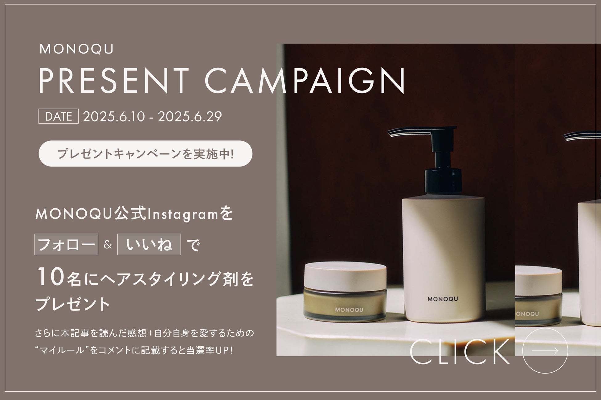 インタビュー 「わたしをカタチ創るもの。」第2弾の公開を記念して、MONOQU公式Instagram (@monoqu_official)にてプレゼントキャンペーンを実施します。
