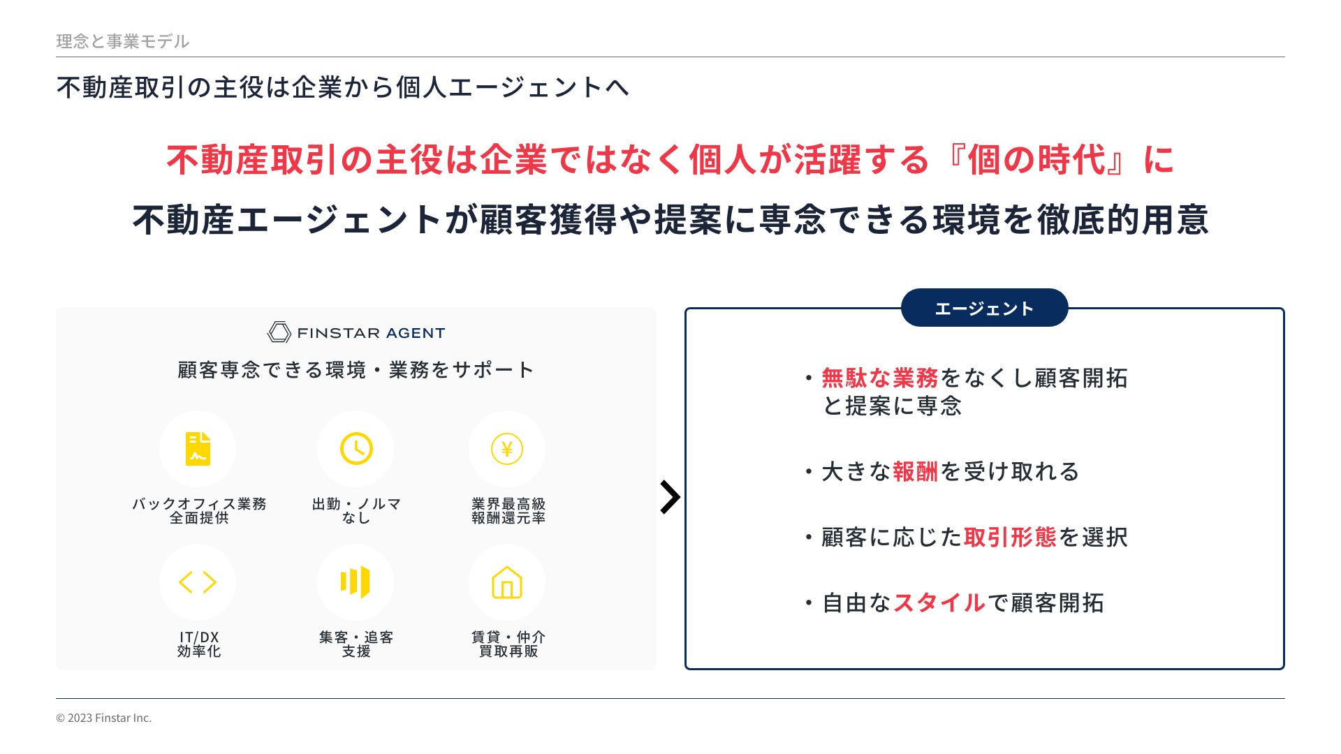 これまでの働き方として、企業がフロントに立って収益を取っていくというところを根本的に変え、力のあるエージェントが「個人」として活躍できるよう徹底的にサポートを行っています。