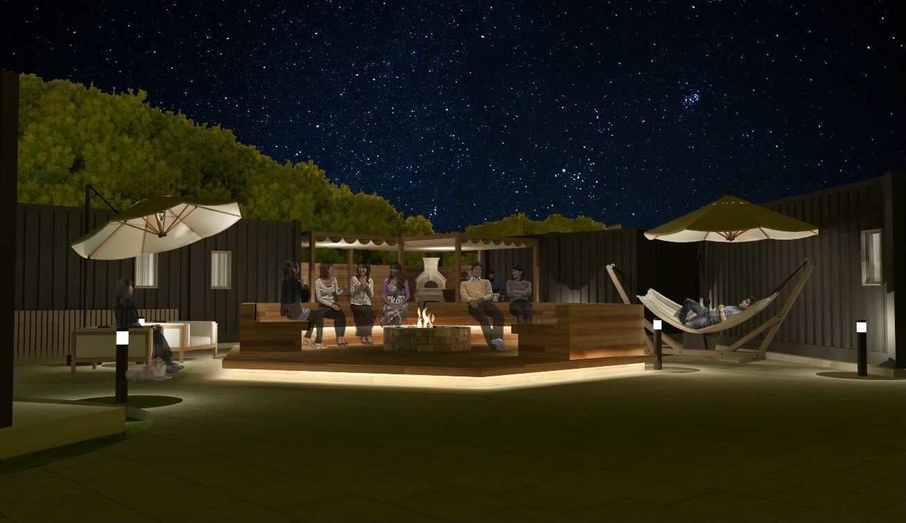 山中で大自然に囲まれたTAKAHARAとは対照的に、CHIKATSUYUのテーマは「遊び心満載の、ちょっとルーズで心ゆるまる宿」。愛犬と過ごせるプライベートガーデンや焚き火を囲めるテラス、宿泊客自身で焼くことのできるピザ窯などを備えています。非日常にワクワクしたり、気の置けない仲間や家族とゆったり過ごしてホッとしたり、リラックスできる空間に仕上がる予定です。「熊野古道を訪れる観光客=トレッキング目的のみ」という現状を変えるべく、さまざまな観光目的の方に楽しんでいただける宿を目指します。