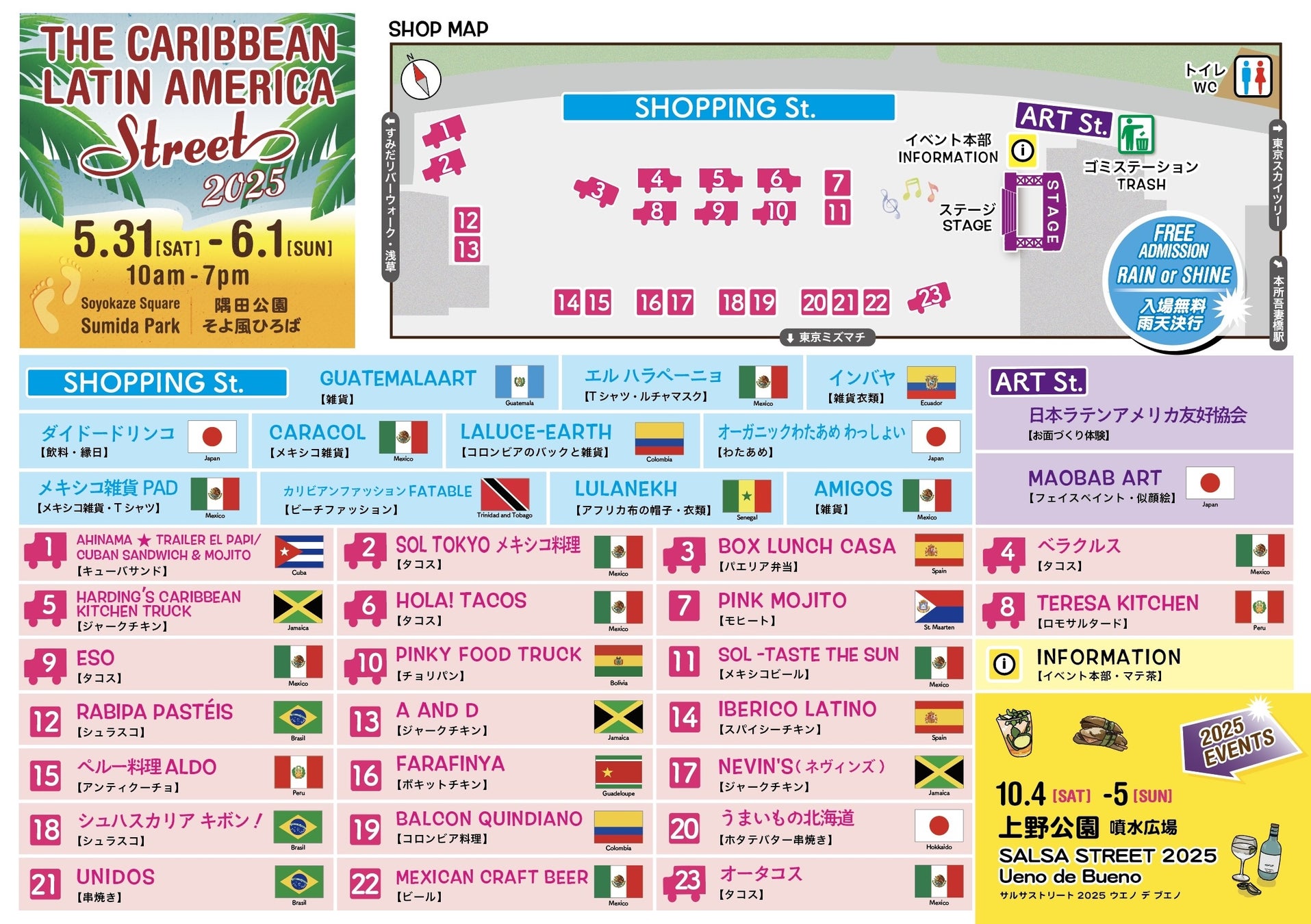 [出演者・出店ブース発表] カリブ・ラテンアメリカストリート2025 -5/31(土)6/1(日)墨田区隅田公園そよ風ひろば-