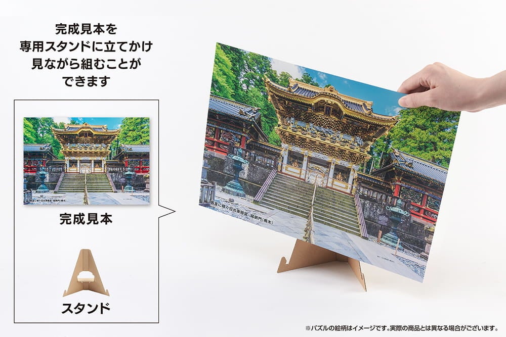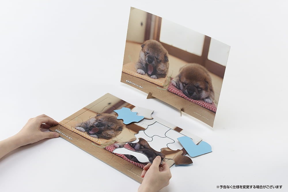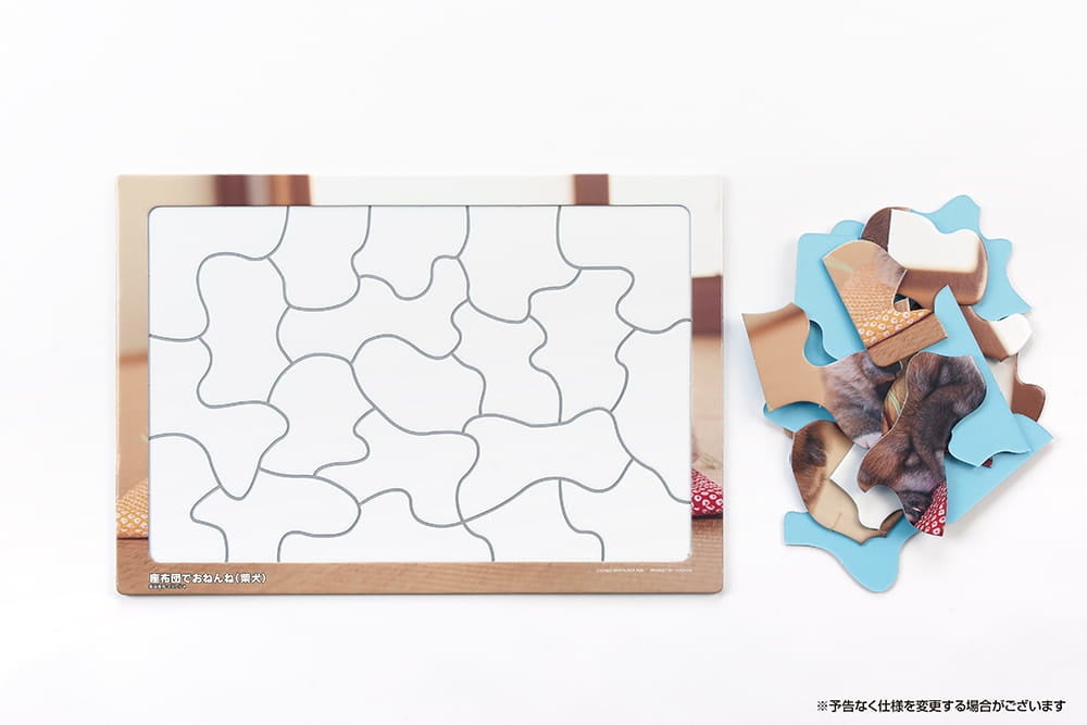 台紙付きのジグソーパズルで、台紙にはピース形状が印刷されており、絵柄以外にもそのピース形状をヒントに組むことが出来ます。