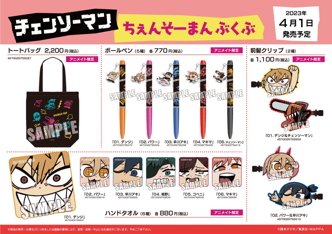 2023年4月1日(金)~2023年4月23日(日)の期間中、全国アニメイトにて『チェンソーマン』の対象グッズを