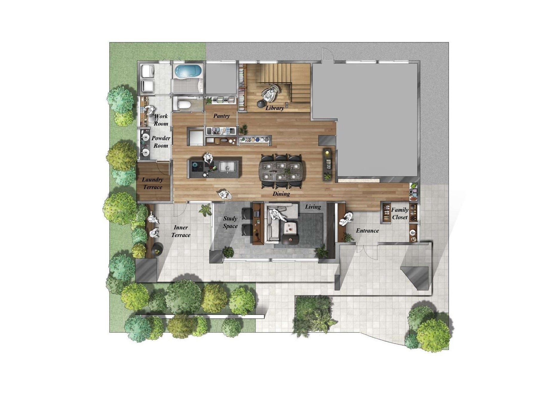 実生活で役立つ機能的な提案をたくさん取り入れました。他にもインナーテラスやインナーバルコニー、タタミコーナー、プロジェクター付き寝室など、生活を豊かにする、あったら嬉しい憧れの提案を揃えました。