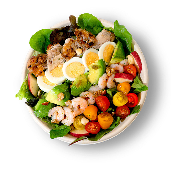 その名の通り、サラダには、ヤサイ、果物、ナッツだけでなく、ローストチキンなど様々な具材を使用していて、ひとつのボウルに栄養素がぎっしりと詰まったパワーみなぎるサラダをご提供します。