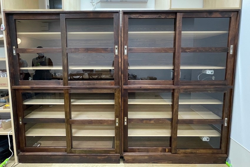 金継ぎで修理中の器は、漆が乾くための温度と湿度の条件に管理された「漆風呂」に入れて乾かします。浅草店のプレオープン以降、現在は簡易版の漆風呂を用意しておりましたが、この度、「つぐつぐ」の代表、俣野の師匠であり30年以上漆芸に携わる柴田克哉先生監修・制作の特大漆風呂が完成し、本格オープンを迎えることとなりました。