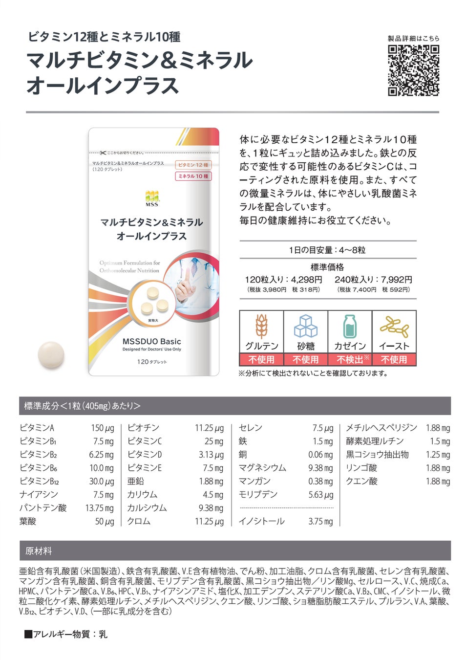 製品名:MSSDUO Basic『マルチビタミン&ミネラルオールインプラス』
