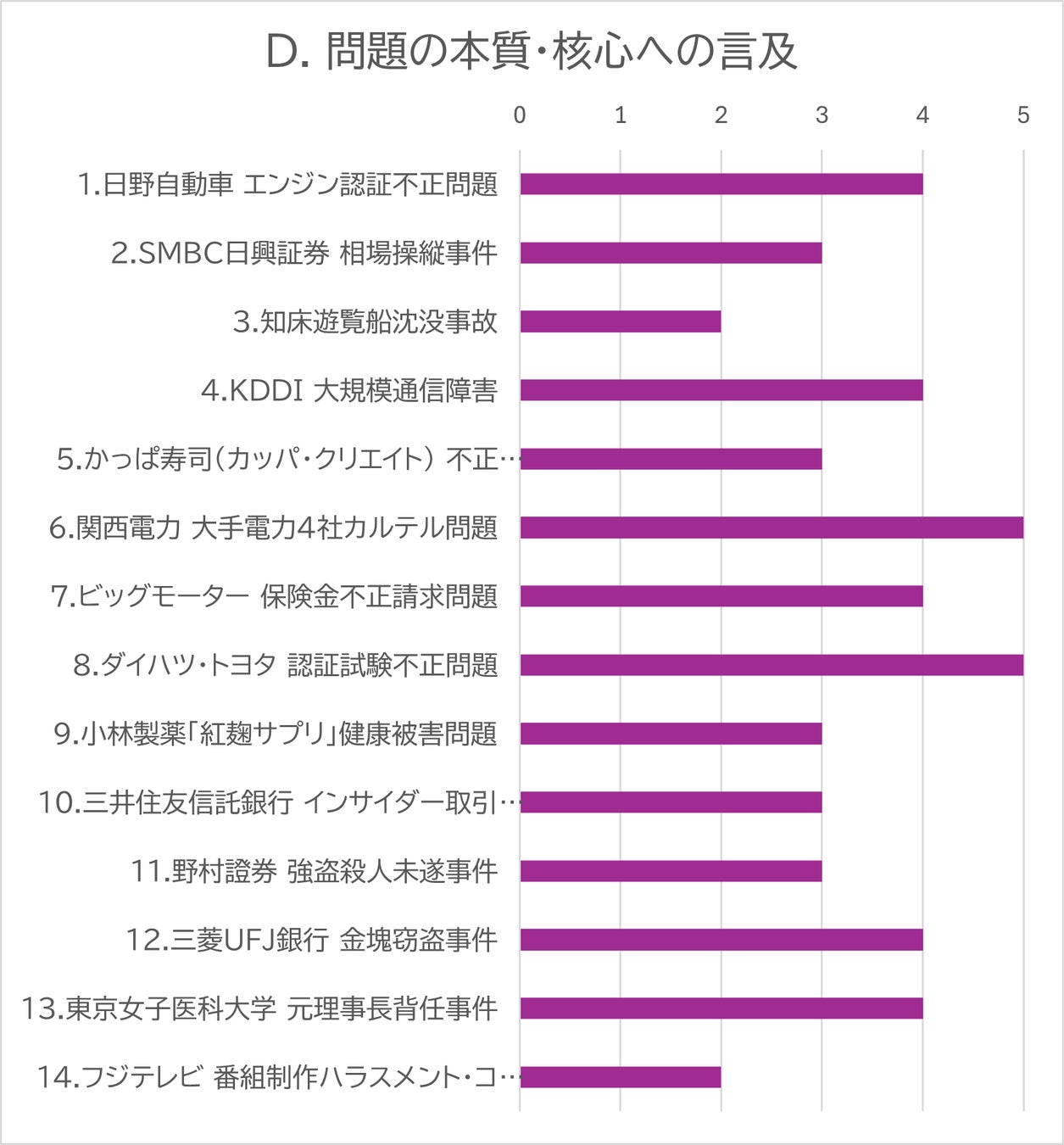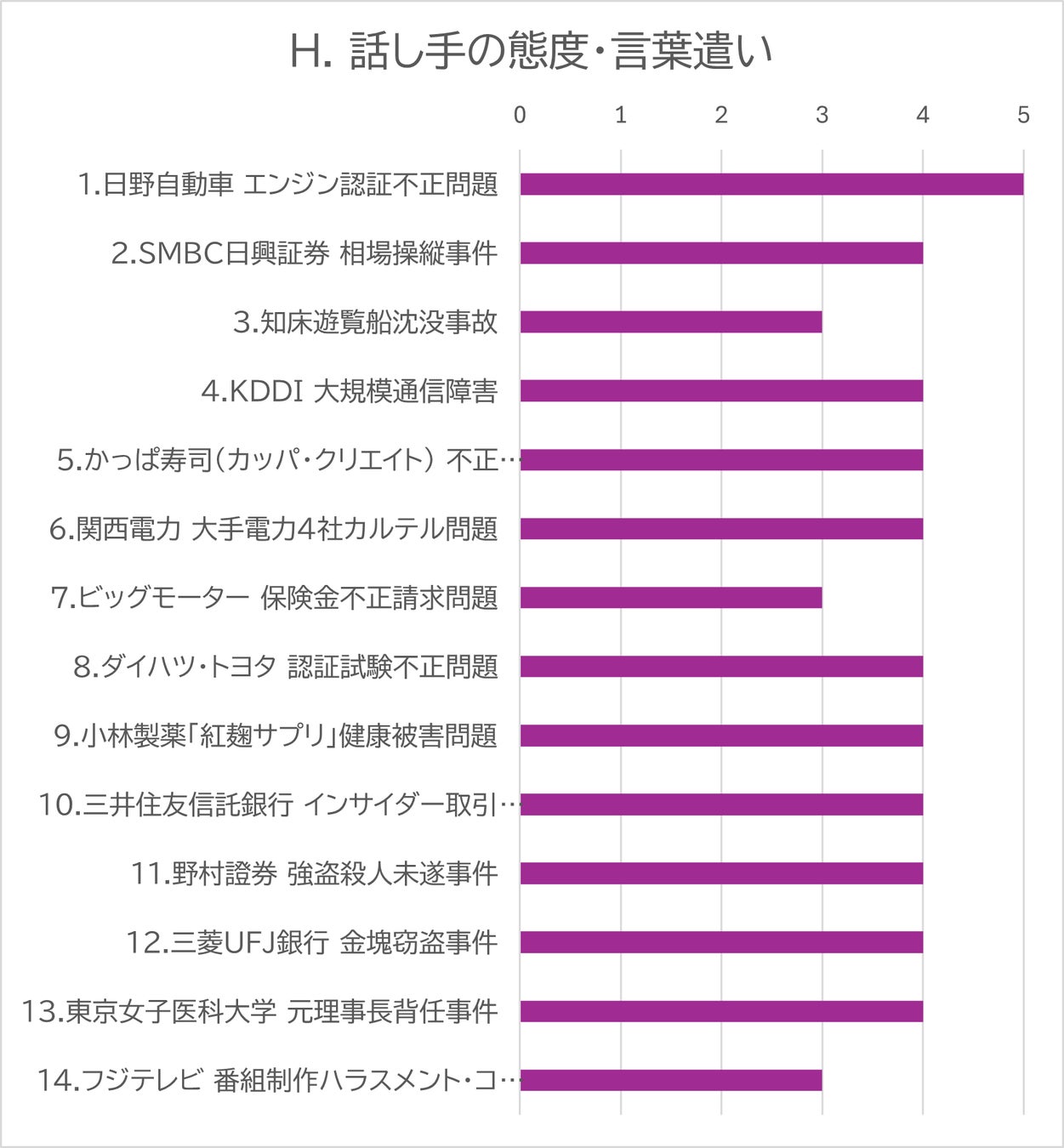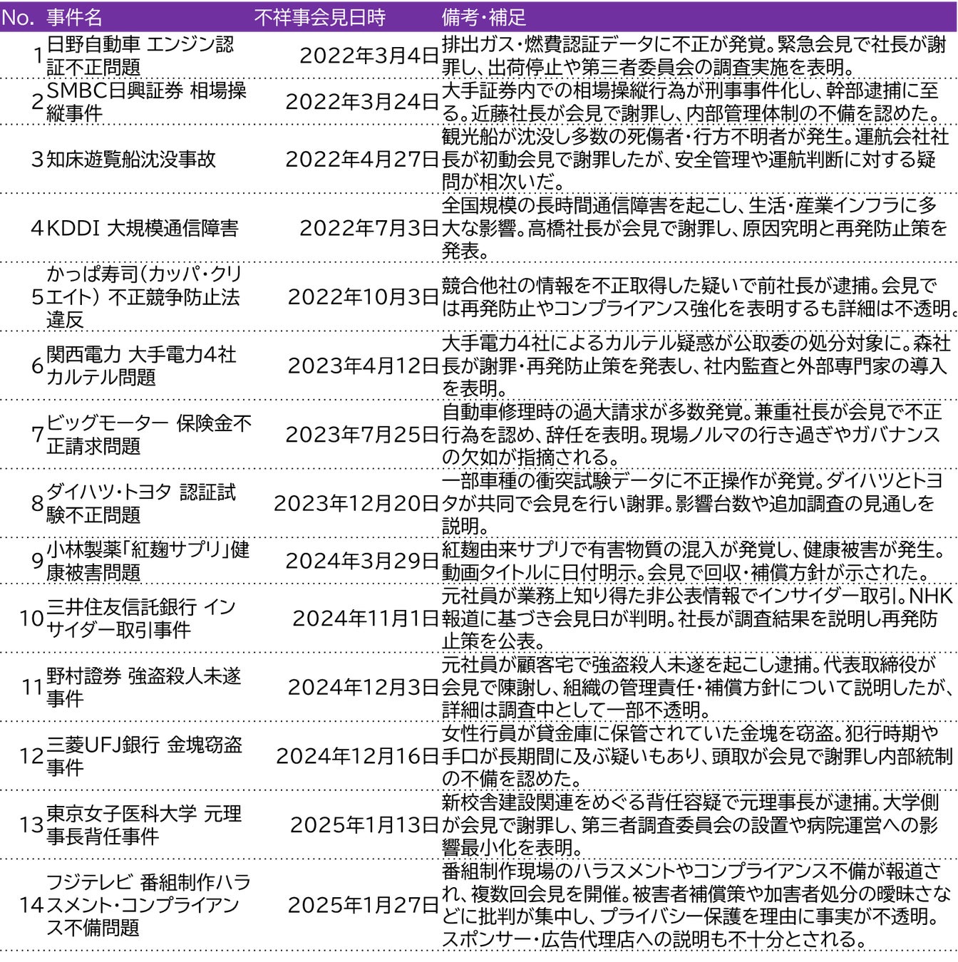 調査対象: 2022年以降に発生した企業・組織の不祥事記者会見14件