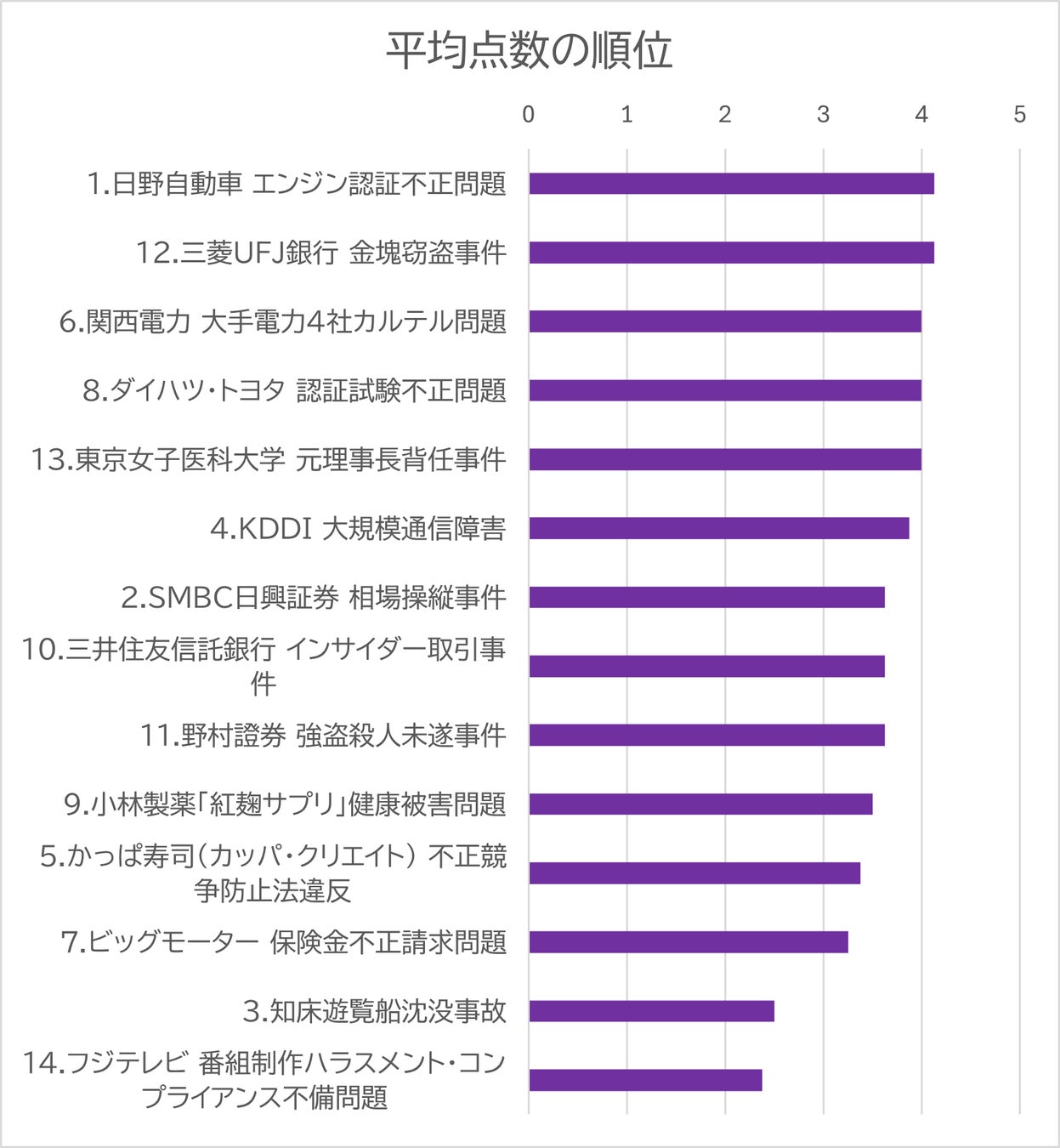 今回の調査でも、初動が迅速で外部の専門家を活用するなど、真摯に解決に取り組んだ企業は相対的に高い点数を獲得しています。一方で、フジテレビやしれとこ遊覧船のように、初動が遅れたり責任所在が曖昧なまま会見を続けたりしたケースは、結果的に減点の対象となっています。