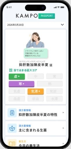 漢方パスポート機能: 漢方薬を選択するだけで、証、漢方薬の特性、主な配合生薬、証や季節に応じた養生法とおすすめの食材、生活指導、運動指導を含む7つのカテゴリの情報を自動生成します。患者様は自身の情報をいつでも確認でき、医師との情報共有もスムーズになります。 今後はAIでの、よりパーソナライズされた養生指導を行う予定です。
