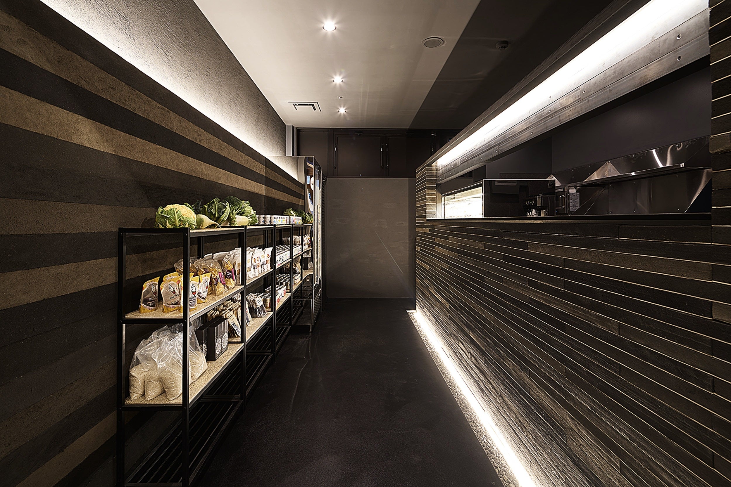 豊洲市場の青果仲卸「芋松」が、新領域への事業展開を試行・模索するための飲食・物販店舗を「豊洲 千客万来(2024年2月開業)」にオープンさせました。日本建築に慣れ親しんだ「土」を主材として扱うことを木野内剛氏(株式会社日本設計所属)が考案され、販売する野菜の「畑の土」を借用し、伝統的な木摺や型枠形成技法を応用した「立体木摺土壁」を新たに淺沼組が開発し、地域の風土を表す「土」の質感表現に加え、新鮮な日取り野菜を通して地域の食文化に触れることのできる空間を創出しました。