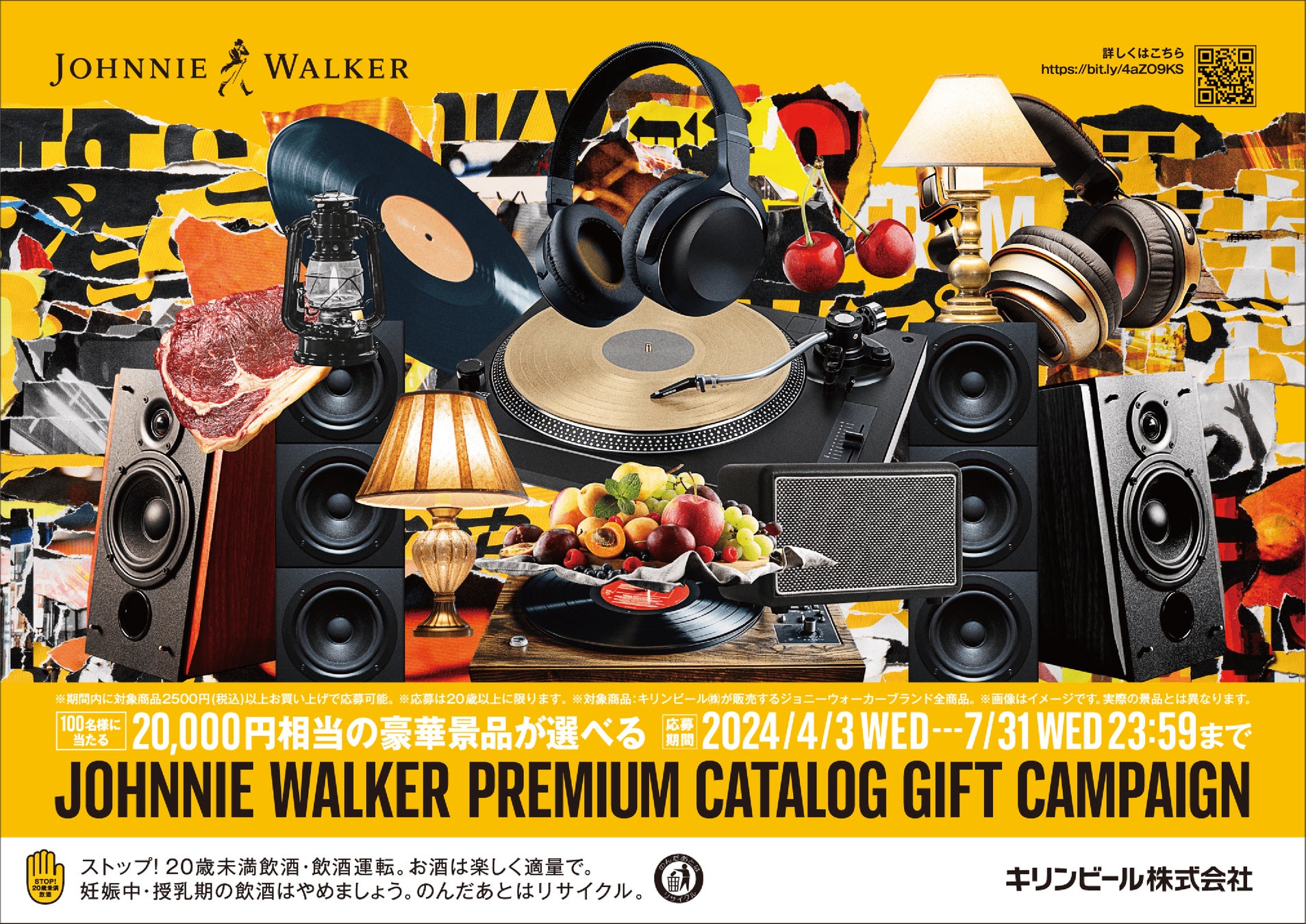 ジョニーウォーカーの世界観を体現した数々のギフトを、歩みを止めない“KEEP WALKING”な方々へ届けるために、音楽、アート、フード、インテリアなど豪華アイテムがもらえるプレミアムカタログギフトを、抽選で100名様にプレゼントするキャンペーンを実施します。
