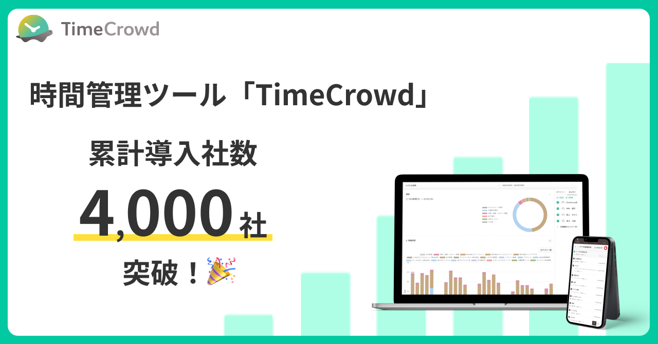 時間管理ツール「TimeCrowd」の累計導入社数が4,000社を突破!