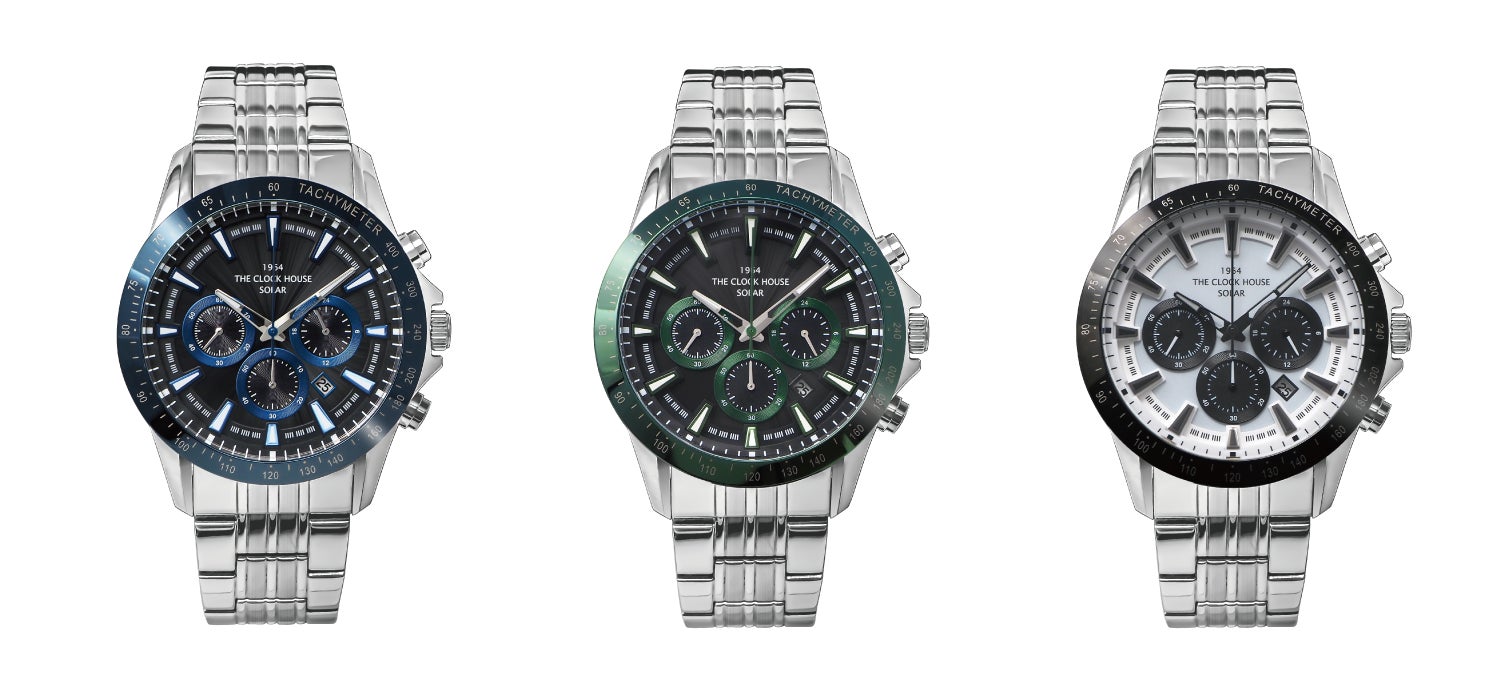 アパレルでは当たり前となったSPA型商品。自社で「企画」「開発」「製造」「販売」まで全て一貫して行うことで流通工程が短縮され、その分コストを抑える事が可能。ザ・クロックハウスのPBウォッチはメーカー商品と同等の高いクォリティを実現しながらポピュラープライスを維持する「高コスパ」がプロダクトポリシーです。1万円以上の腕時計は全てソーラー駆動、レザーバンドモデルは裏地に高級素材の東レ製のウルトラスエードを使用しています。