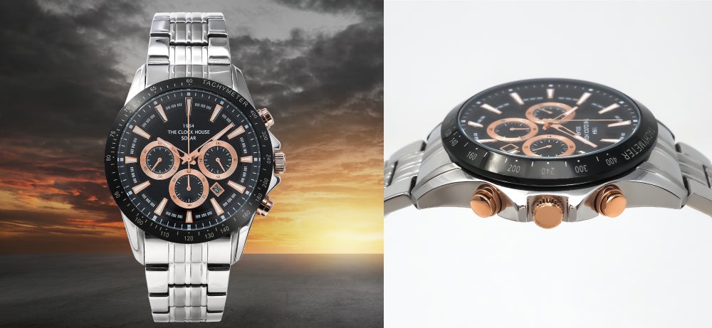 ・電池交換不要のソーラーウォッチ・クロノグラフ機能・10気圧防水・ステンレス製と高スペック
