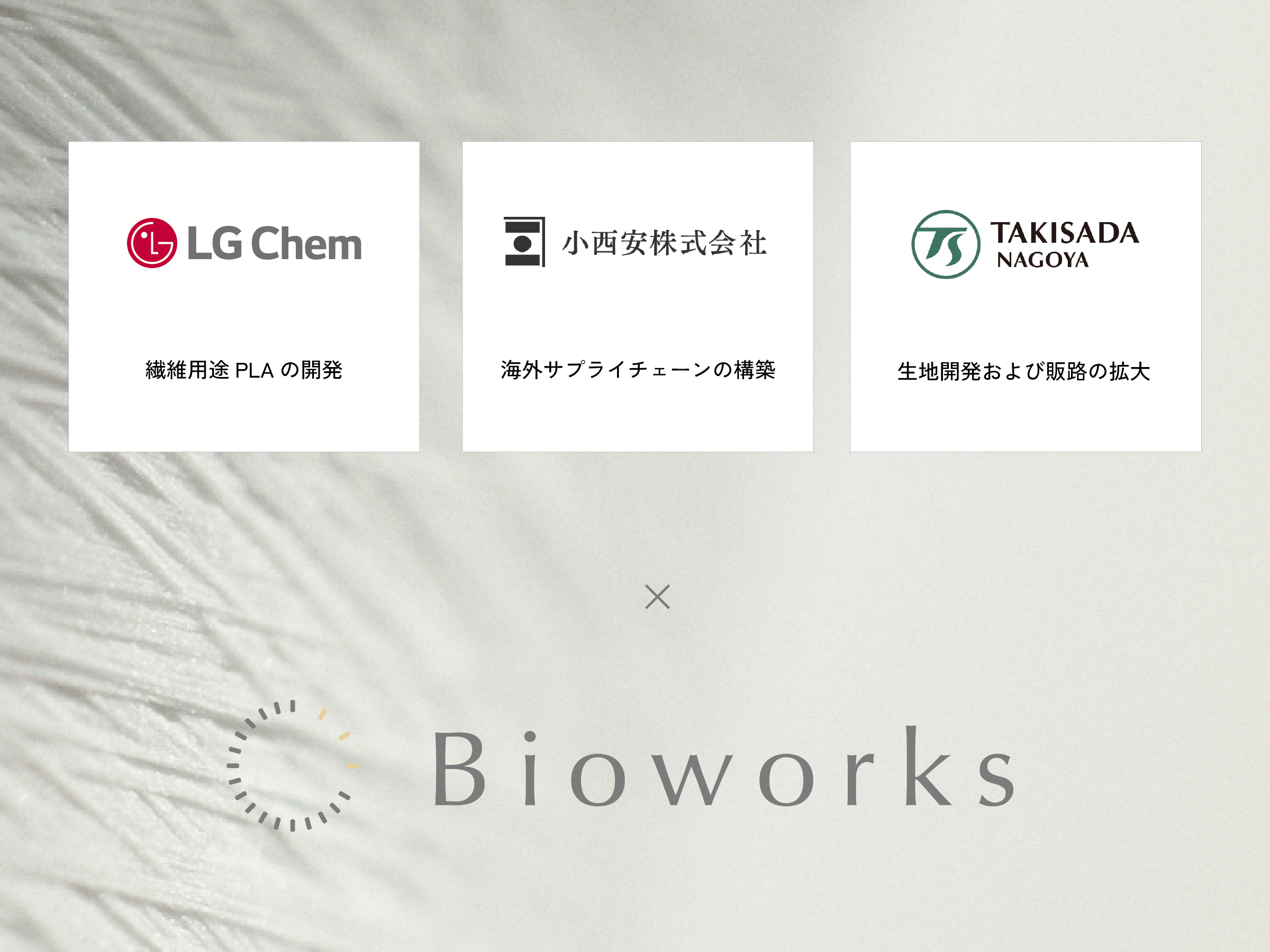 これにより、Bioworksは自社開発のカーボンニュートラル素材「PlaX™(プラックス™️)」繊維の生産から販売までを行うサプライチェーンを強化します。繊維企業と歴史的に深いつながりを持ち生地開発に実績のある繊維商社の瀧定名古屋と化学品商社で海外ネットワークが強い小西安、また8月に当社と資本業務提携を締結した、PlaXの原料であるポリ乳酸(PLA)の生産工場を立ち上げるLG化学の3社を株主として迎え、海外でのサプライチェーン構築と「PlaX™️」の販路拡大をさらに推進してまいります。