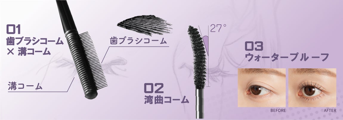 3種類のコームでロング&ボリューム&カール&束感が全て叶う、3in1の最優秀マスカラ。