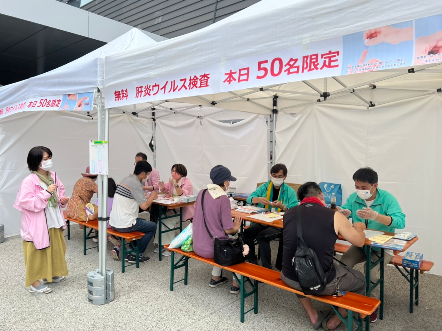 このイベントでは、無料で肝炎ウイルス検査を受けられるブースを設けました。ステージでの呼びかけもあり、沢山の方が検査を受けてくださいました。その他にも、血管年齢測定や、肝臓に関する相談ブースも設け、肝炎や健康について考える機会を作っていただけました。これを機に、今後も継続的にご自身の健康について関心を持っていただきたいと思います。