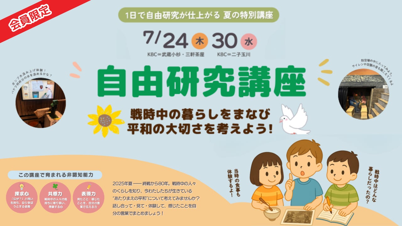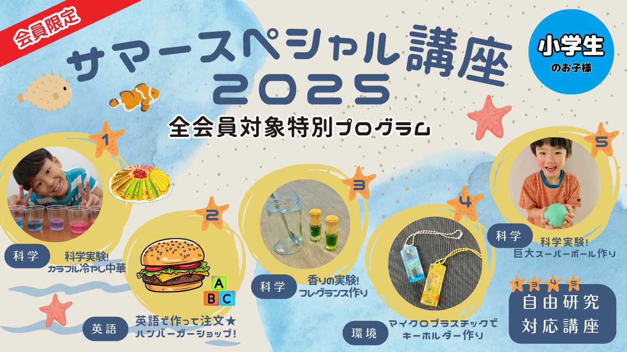 また、東京ドームの裏側見学、銀行員体験、新聞記者体験、保育士体験、芸術鑑賞、電車の車両工場見学など、本物に触れ、プロから学ぶ毎年大人気の職業体験型イベントや、終戦80年のこの夏に「戦争と平和」をテーマにした講座や科学実験とクッキングを組み合わせたワークショップなど、自由研究として小学校に提出可能な成果物を持ち帰ることができるプログラムを企画しております。