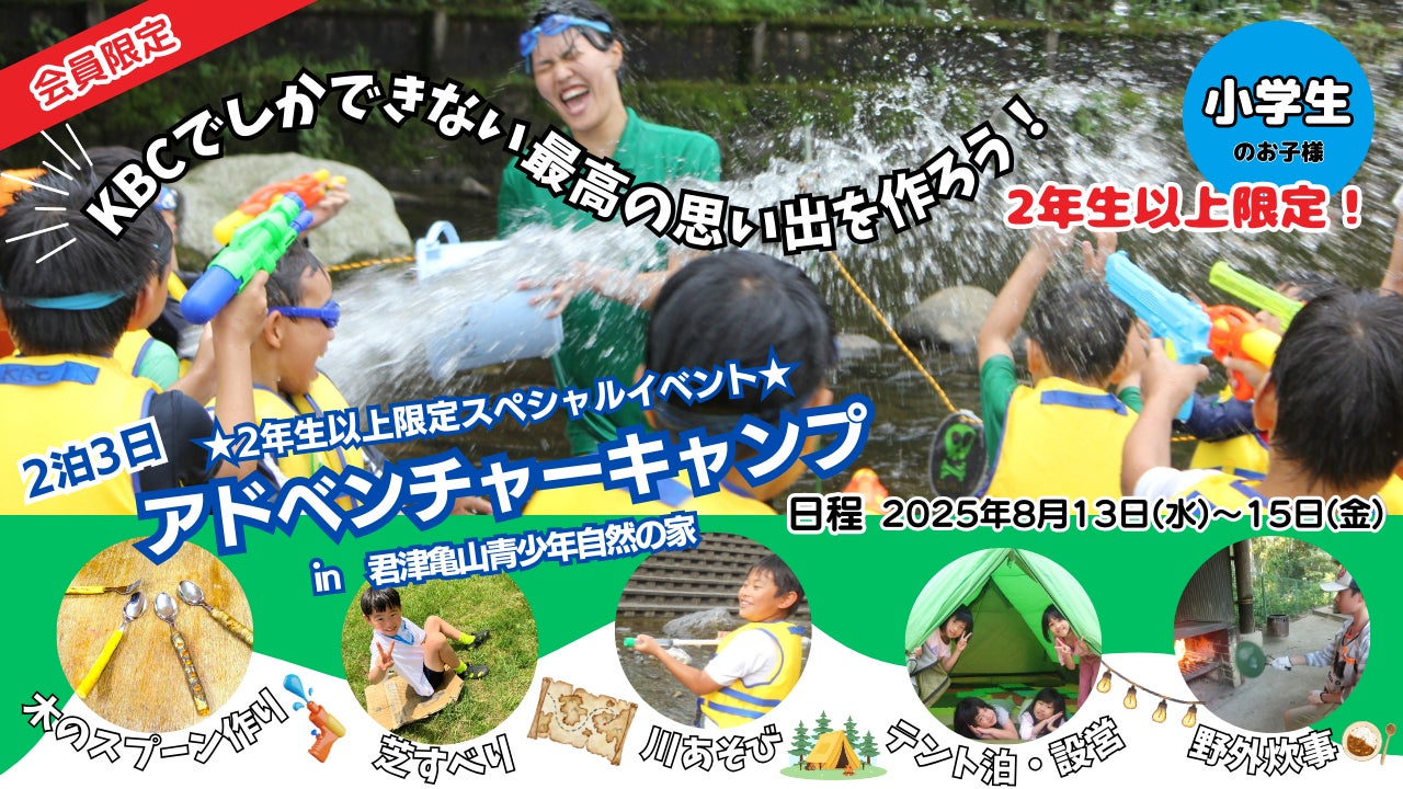 大自然の中さまざまなプログラムを体験するサマーキャンプは、毎年小学生約1,000名が参加し、民間学童保育としては国内最多級の規模を誇ります。全6か所のキャンプにて合計16回開催するほか、初めてアドベンチャーキャンプの開催も決定。2年生以上を対象に、川遊びやテント設営などスペシャルプログラムが盛りだくさん。また、KBCとして初となる、サマーキャンプの参加による非認知能力の変化を可視化する調査も実施し、教育的効果の検証にも取り組みます。