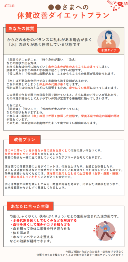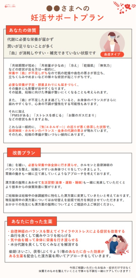 ②回答をもとに、漢方薬剤師がお悩み・体質に合わせた改善プランを提案