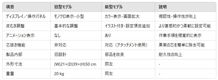 調整可能な設定項目が追加され、お客様のニーズに応じた皮むき設定ができるようになりました
