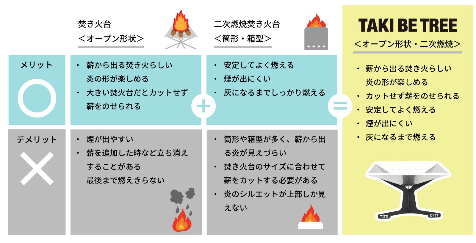 TAKI BE TREEはその悩みを解消しながら焚き火を楽しめる新しいカタチになりました。