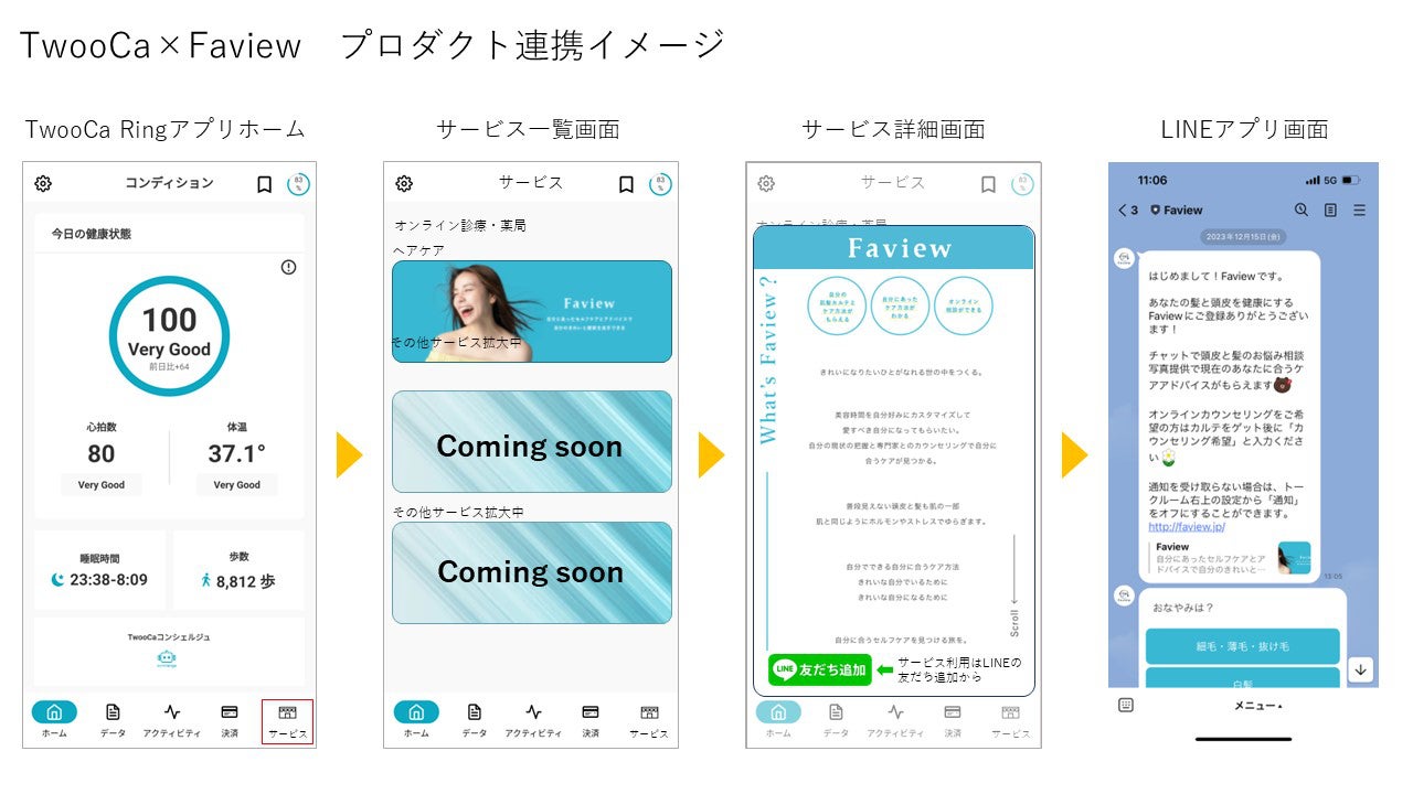 今後、TwooCaコンシェルジュサービス内での連携も視野に入れ、一人でも多くの方々にFaviewを利用いただき、女性の美と健康の向上に取り組んでまいります。