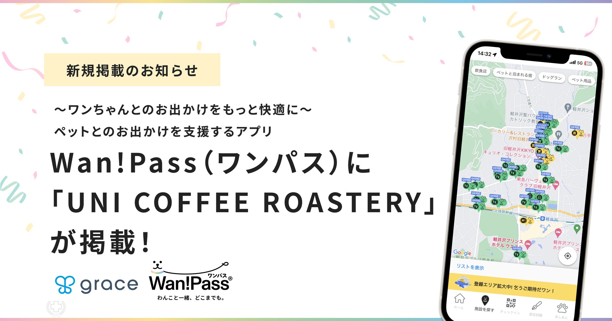 充実したペットライフを送るためのアプリ「Wan!Pass(ワンパス)」を展開するペッツオーライ株式会社(東京都中央区、代表取締役CEO:小早川斉)は、株式会社GRACE(神奈川県横浜市、代表取締役:沢村 優太)が運営するUNI COFFEE ROASTERYにおいて、「Wan!Pass(ワンパス)」が導入されたことをお知らせいたします。