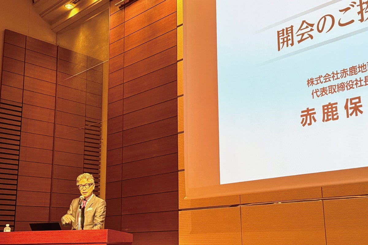 第1部では、代表取締役の赤鹿より、日頃よりご愛顧いただくお客様と社員の努力により、赤鹿地所が14年連続で増収増益を達成したことが報告されました。