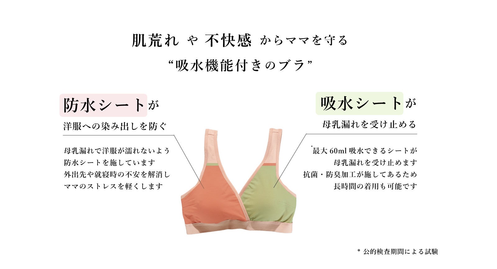従来の授乳ブラは、それ自体に吸水機能がなく、授乳中に母乳がブラジャーからにじみ出てしまわないように、母乳パッドなどをブラジャーに入れ、母乳もれを防ぐことが必要でした。