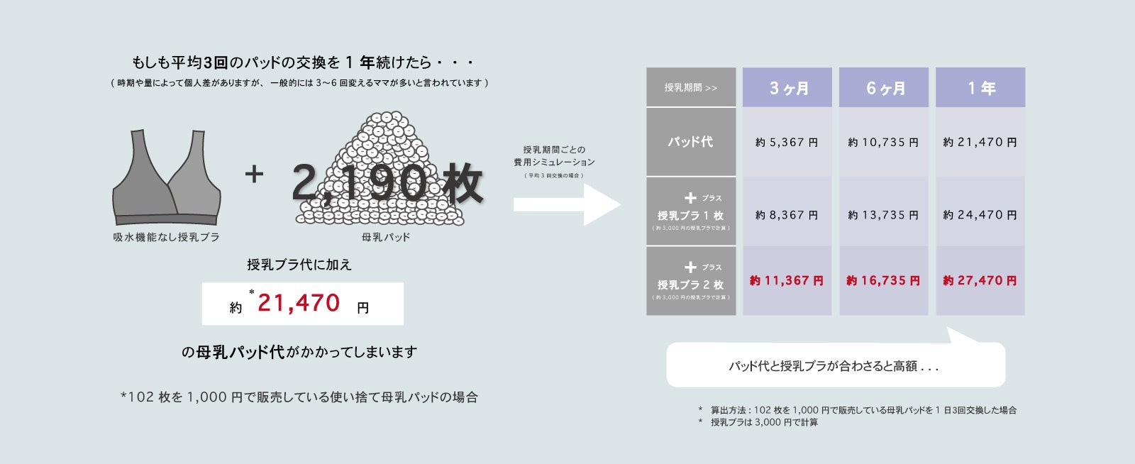 (※)102枚を1,000円で販売している使い捨て母乳パッドで計算した場合