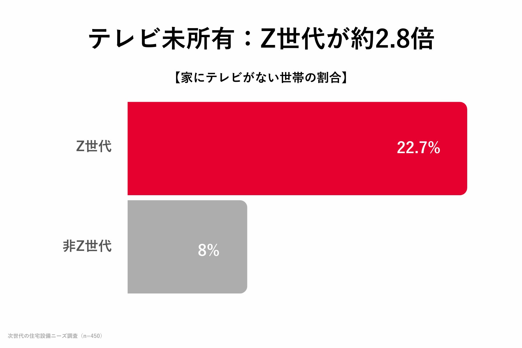 → テレビ不所有率はZ世代22.7% vs 非Z世代8.0%と回答。