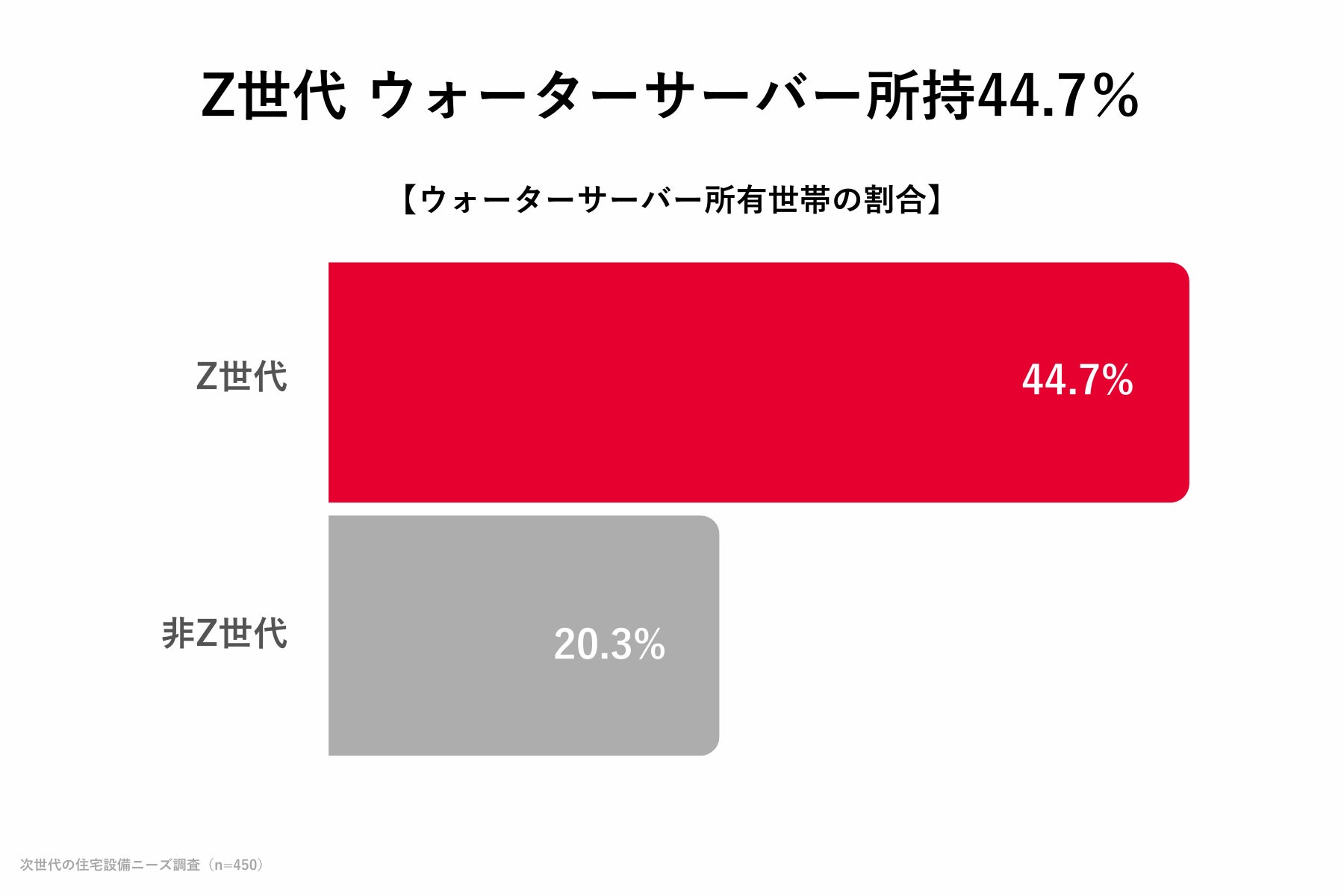 → ウォーターサーバー所有率はZ世代44.7% vs 非Z世代20.3%。水や空間の“映え”に投資する傾向。
