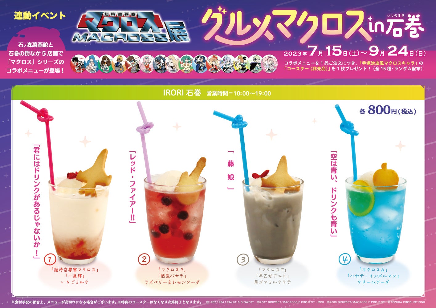 コラボメニューを1品ご注文につき、「手塚治虫風マクロスキャラ」の「コースター(非売品)」を1枚プレゼント!(全15種・ランダム配布)