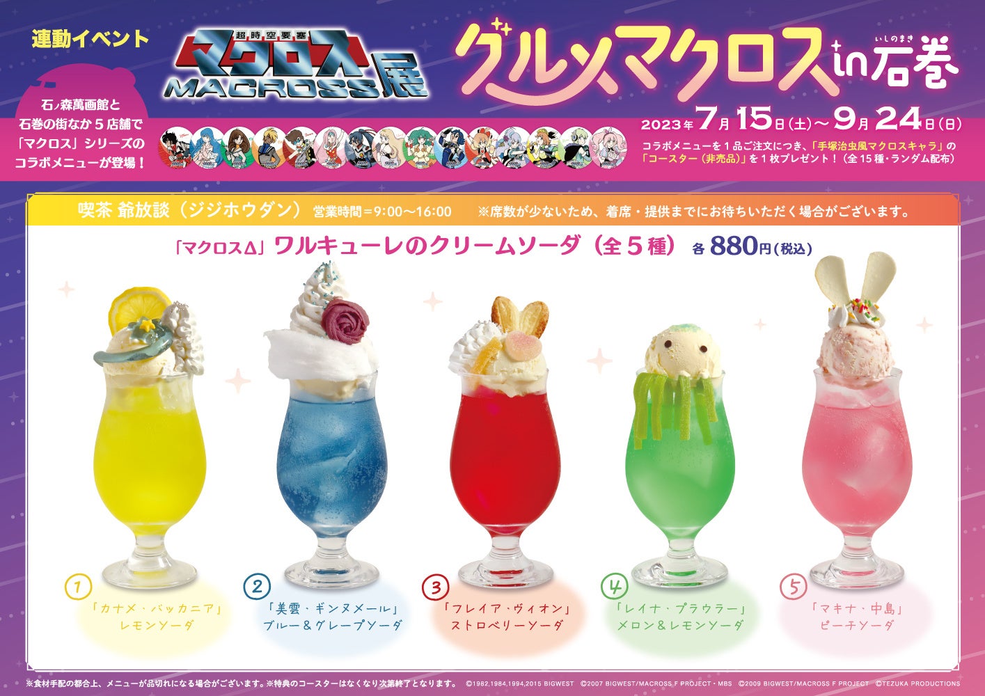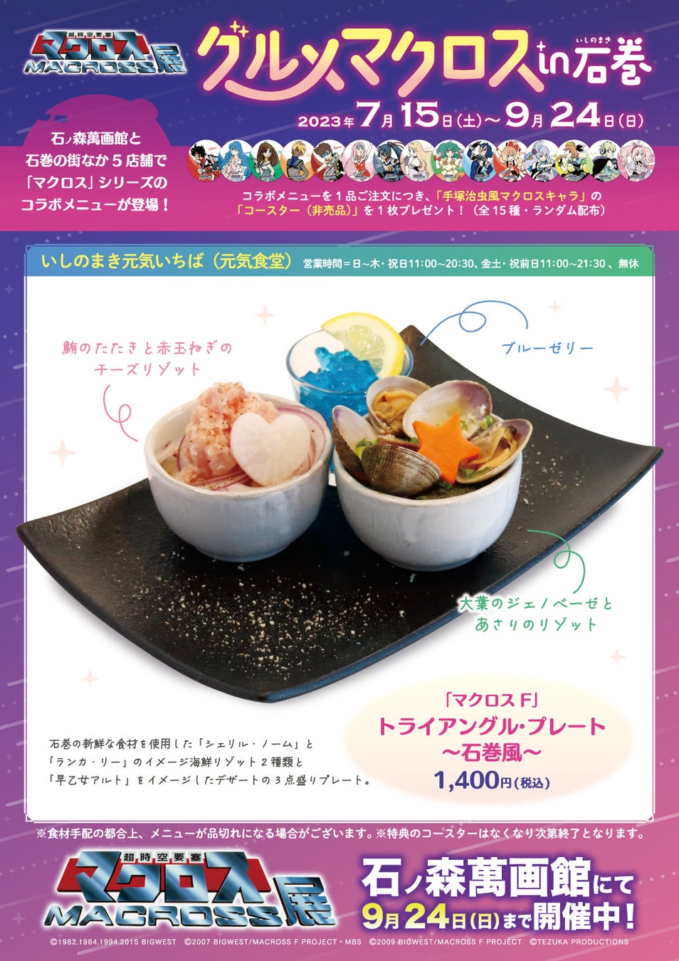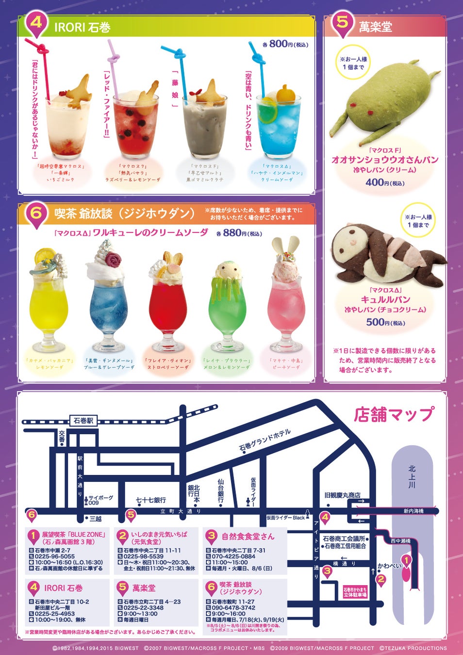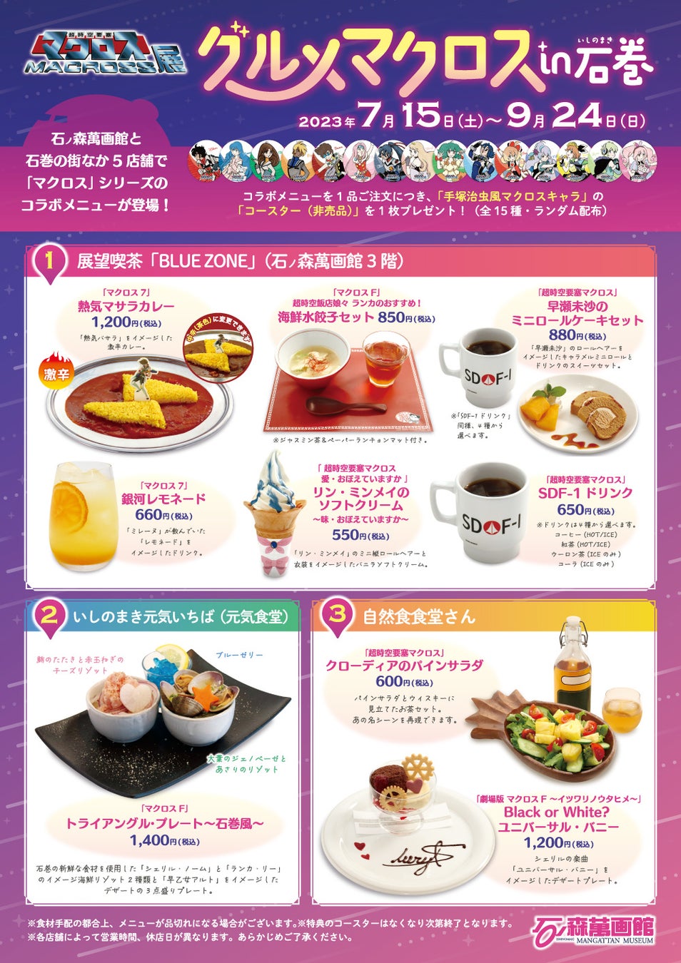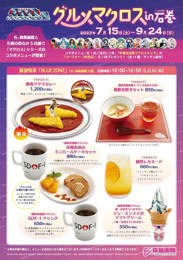 展望喫茶「BLUE ZONE」(石ノ森萬画館3階)と石巻のまちなか飲食店5店舗で「マクロス」コラボメニュ
